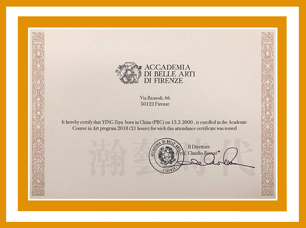 * 学习期满将根据学生每日考勤和课堂表现情况进行考察,考核成绩合格者,颁发《高级课程结业证书 · 佛罗伦萨国立美术学院》。