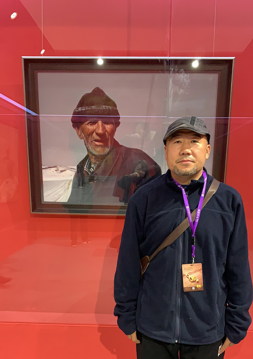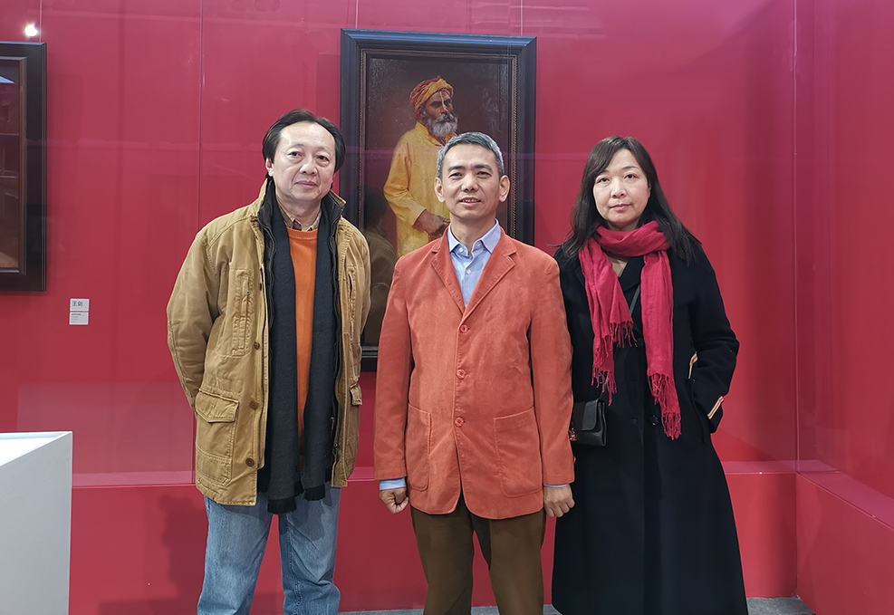 "国色委"油画委员会副秘书长高玉杨与参展画家邢路生(右一)会见